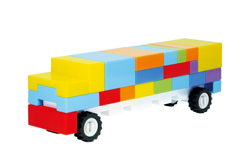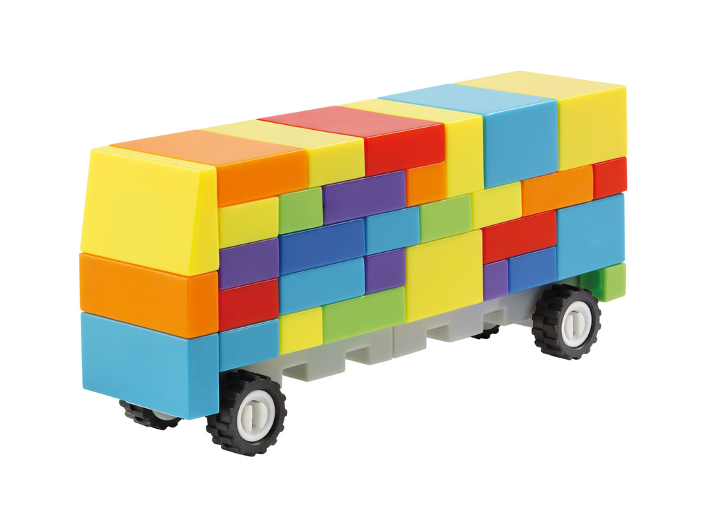 造型醒目、彩虹颜色,坐校巴上学的城市儿童倍感亲切。且容易拼接,建议作为商场展示模型,除大巴外,也可拼装成其他形状的大、小车或其他造型。
