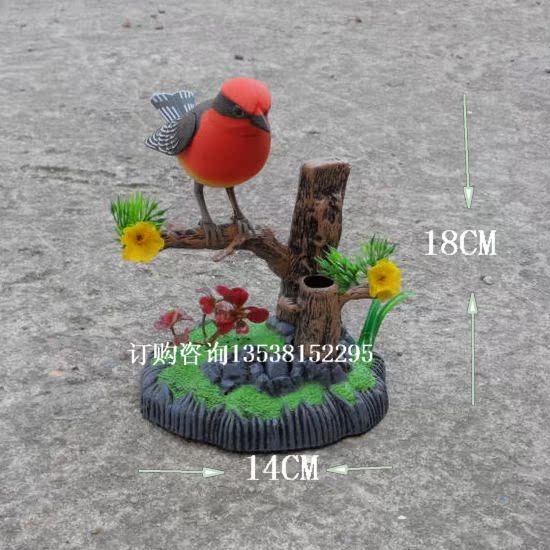 备注说明: 电动感应声控,放入三节自备五号电池,开关一按(开关在底部),手一拍,鸟就会发出声音和跳舞.产品到手后需自己组装,内配有组装说明书.很热销的一款声控鸟,此产品的质量也非常好.