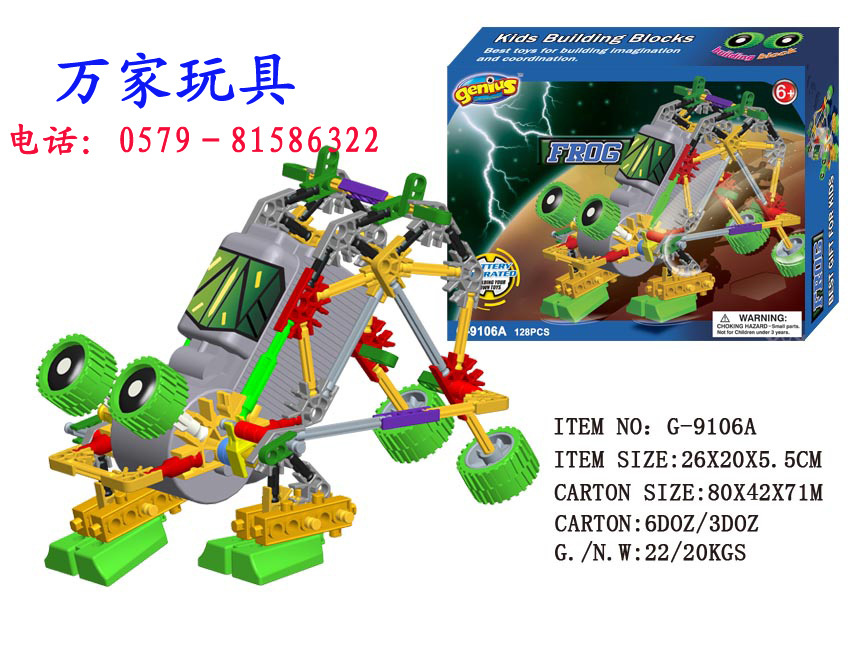 积木有助于开发智力,训练孩子手眼协调能力,排列,接合,环形,对称,拼搭,百变等能开发孩子智力。搭积木时,利于孩子对数字概念的早期培养.还有利于孩子发挥想象,综合运用多种不同种类的积木共同搭建实物。有利于他们想象力和创造力的培养诚招全国加盟0579-81586322,手机销.15868969583,在线QQ630024798.万家玩具,发达万家.专业玩具批发商,全场厂价直销。