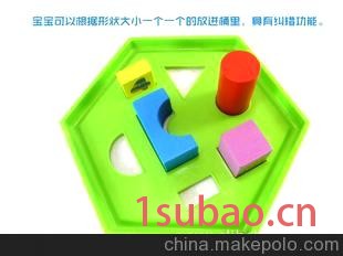 1)让宝宝识别和认识各种形状、颜色和大小不同的积木