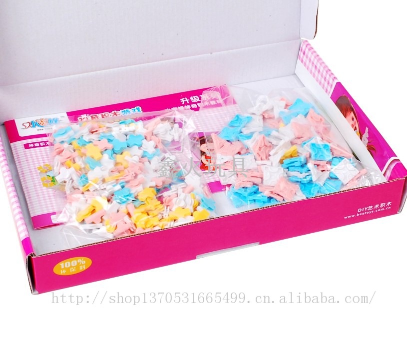 本款产品可以拼凑各种女孩喜欢的物品,如皇冠、相框、蛋糕、魔法棒等。